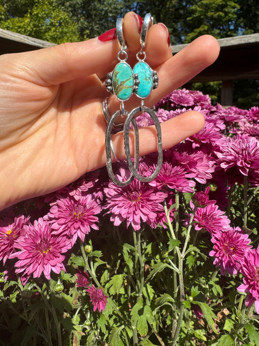PRE ORDER - Kingman Turquoise Chia Statement Earrings - 2 tier