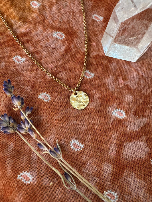 Dainty Hammered Gold Disc Necklace