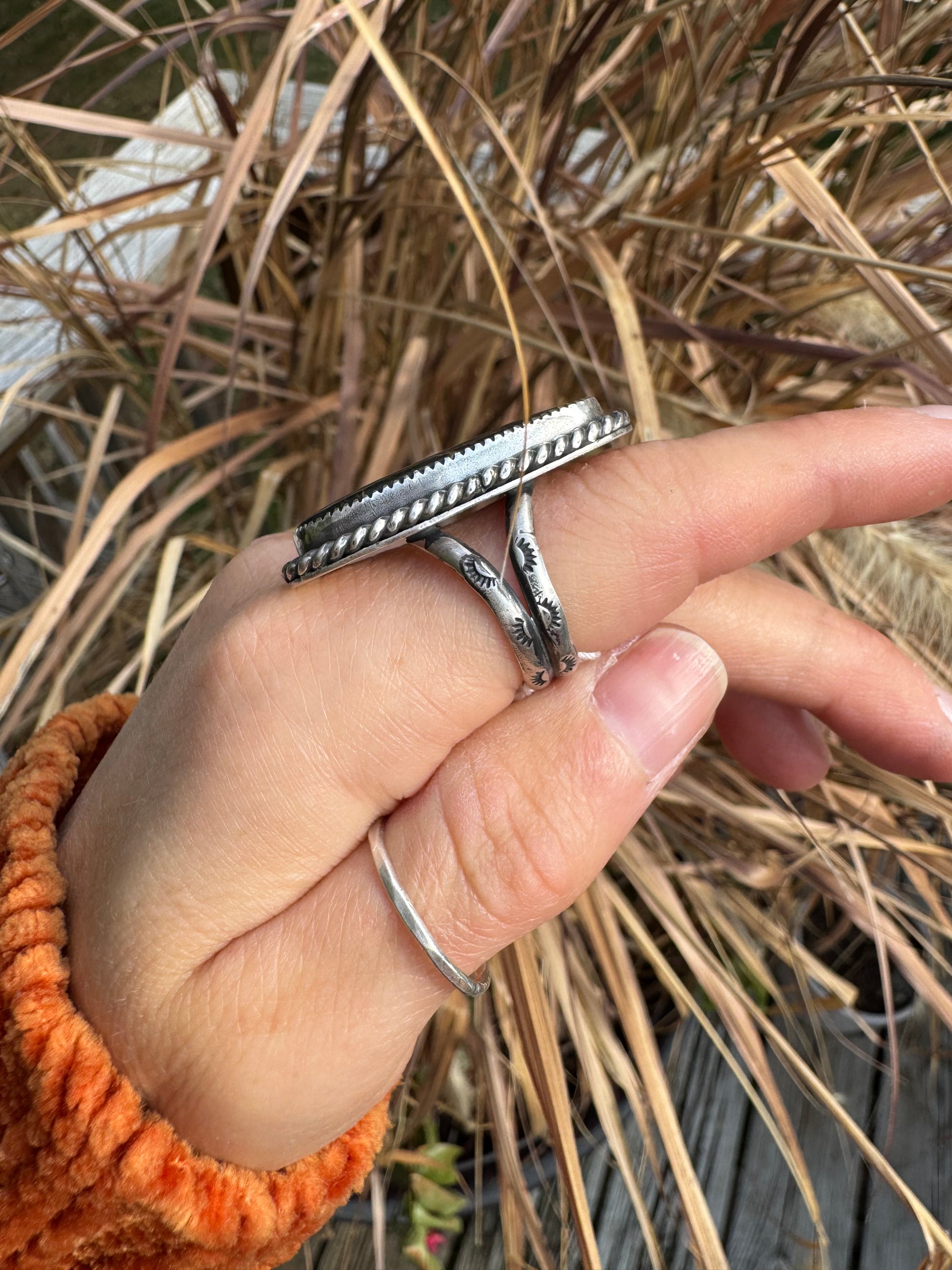 • Sterling silver hand stamped double split shank band