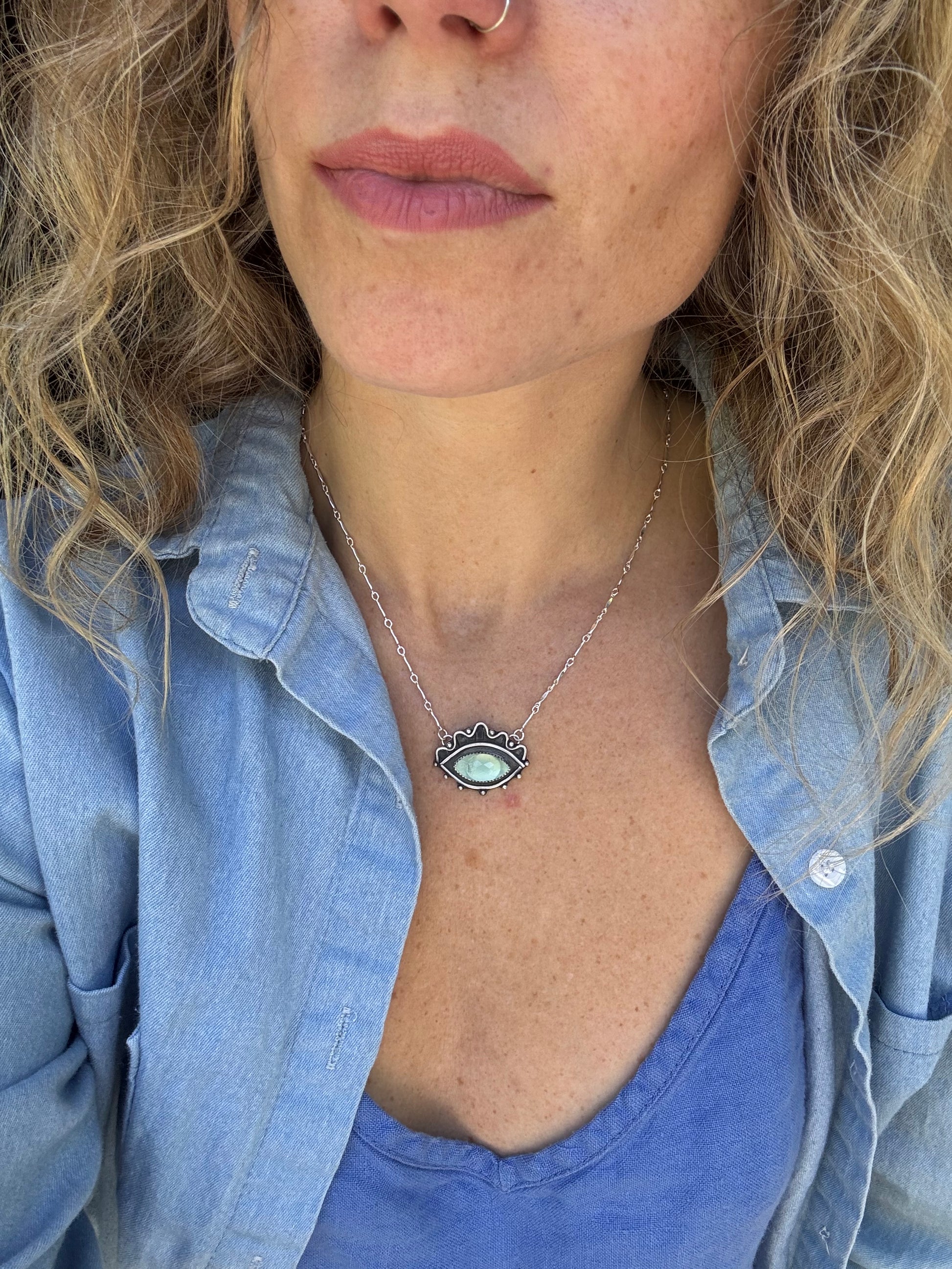 A glowy chalcedony eye necklace. Protection from negative energy is a must these days.