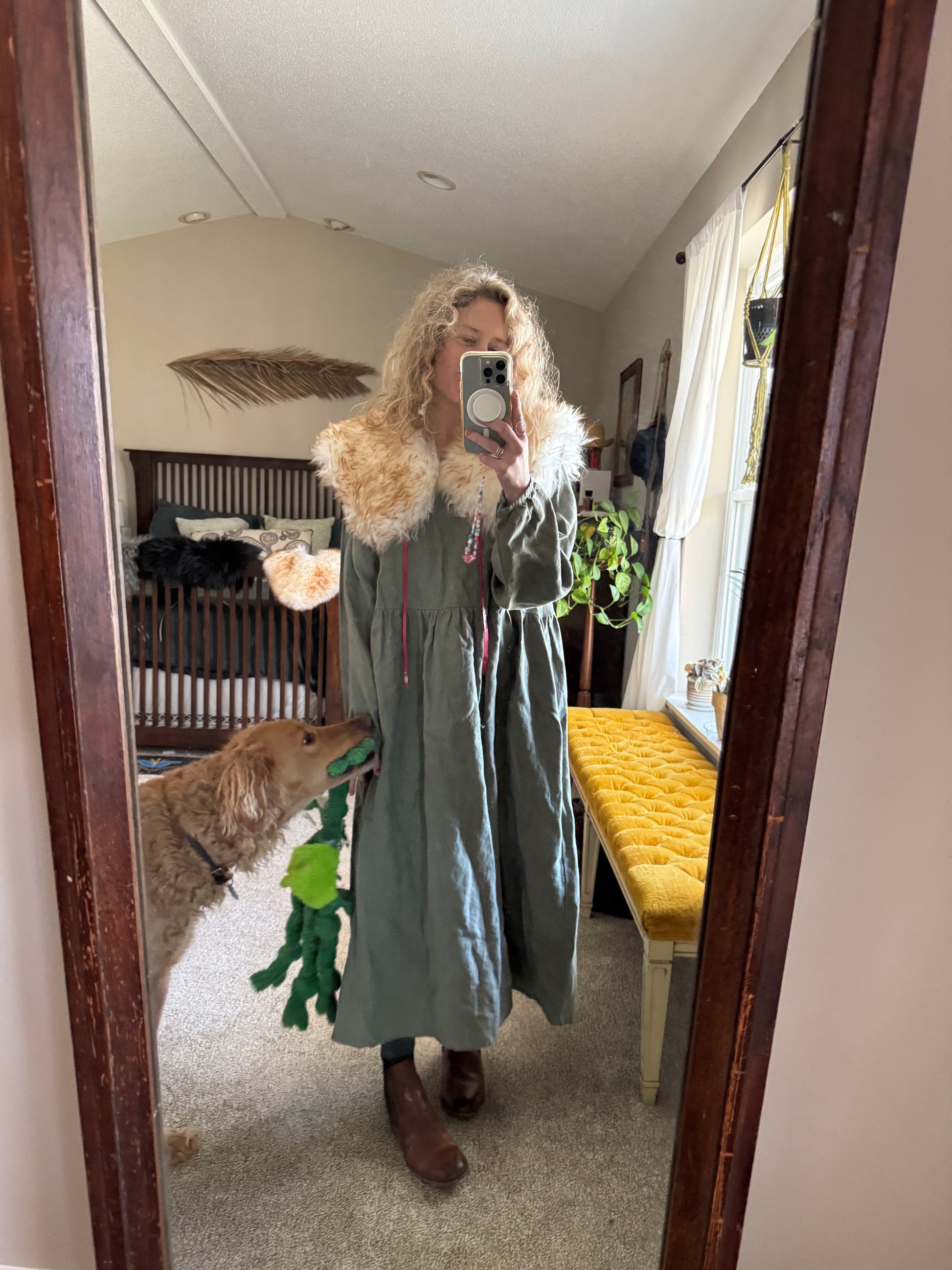 Wearing natural wool and hides will keep you grounded, and warm! And you look like a total badass wearing one of these.