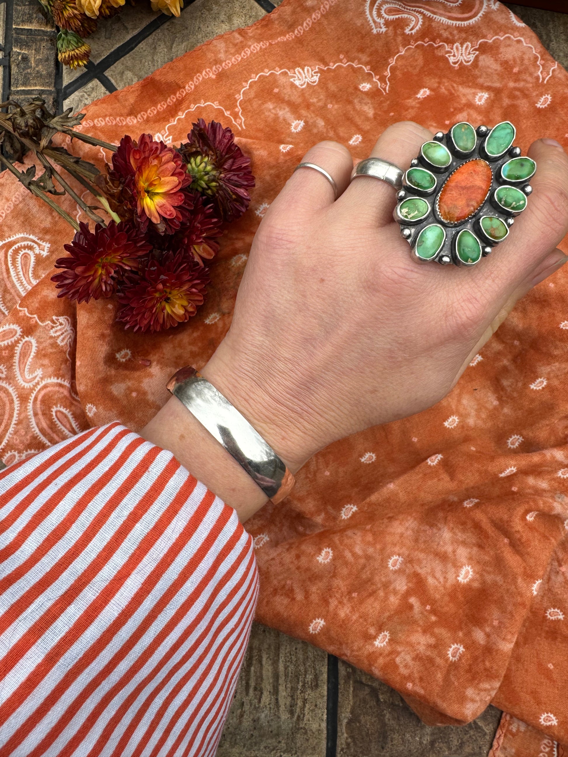 A wide shiny sterling cuff.
